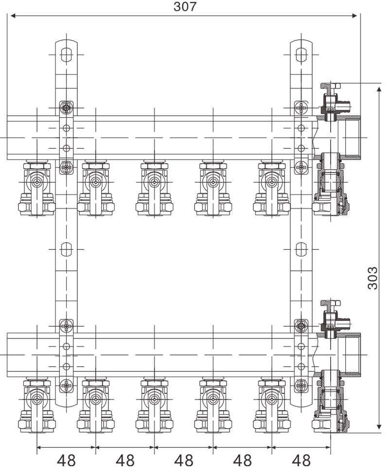 1、分水管上帶各流量控制閥;