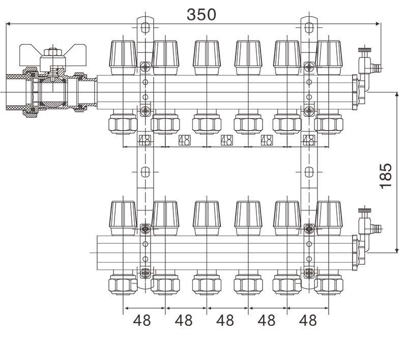 1、分水管上帶各流量控制閥;