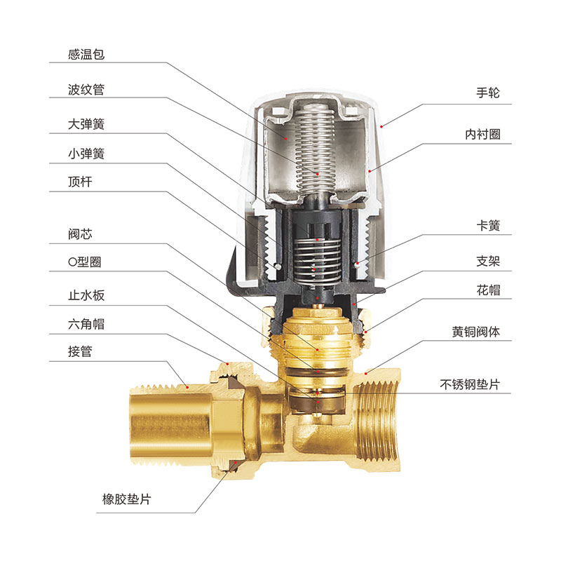 散熱器溫控閥,是以室內溫度為基礎,通過溫控閥自動調節,對進入室內的熱量進行控制,從而使室內散發的熱量與所需的熱量達到平衡,實現空內溫度按霧要進行控制。