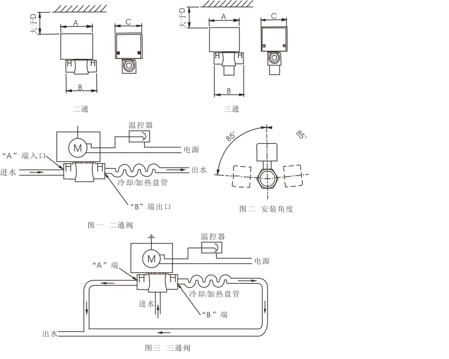 ◆當(dāng)閥門裝在重直管道上時(shí),馬達(dá)罩殼必須防止滴水滲入。